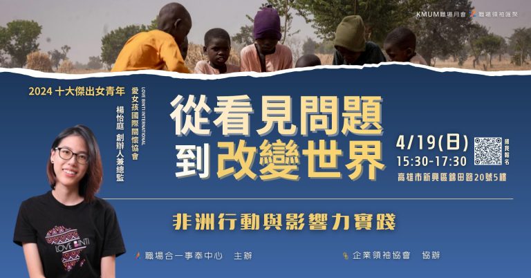 最新消息職場壓力職場領袖職能提升4/19(日)15:30 【從看見問題到改變世界|非洲行動與影響力實踐】楊怡庭 總監▋4/19 15:30 職場月例會從看見問題到改變世界|非洲行動與影響力實踐 這一次,我們邀請到—— 愛・女孩 Love…