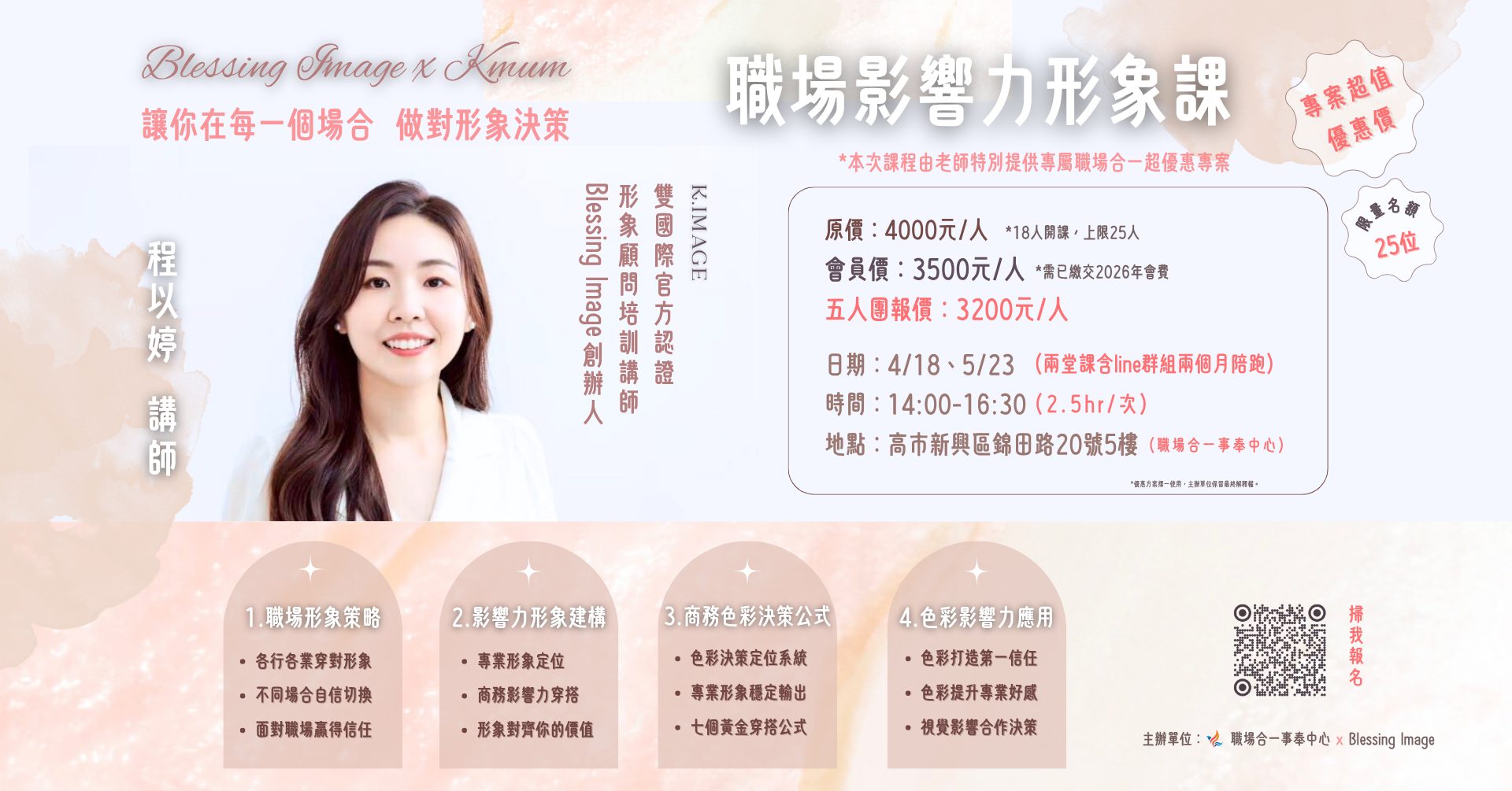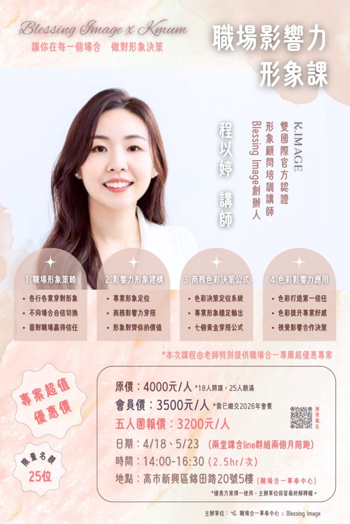 ▋Blessing Image為職場合一的大家 量身打造了兩堂專屬超值優惠價課程