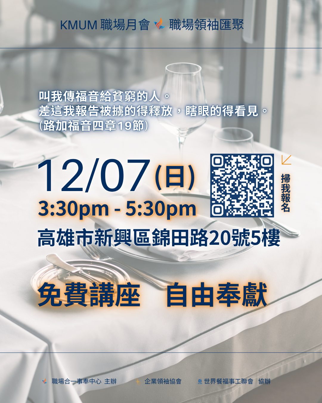 地點|高雄市新興區錦田路20號5樓(職場合一事奉中心)